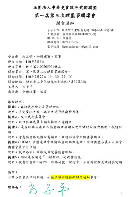 2/27 (六) 晚上7點30分 舉行第三次聯席會議!