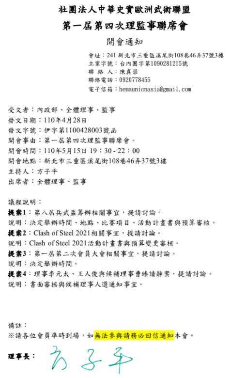 議題內容已E-mail給各理監事成員,開會通知亦已報送內政部系統。