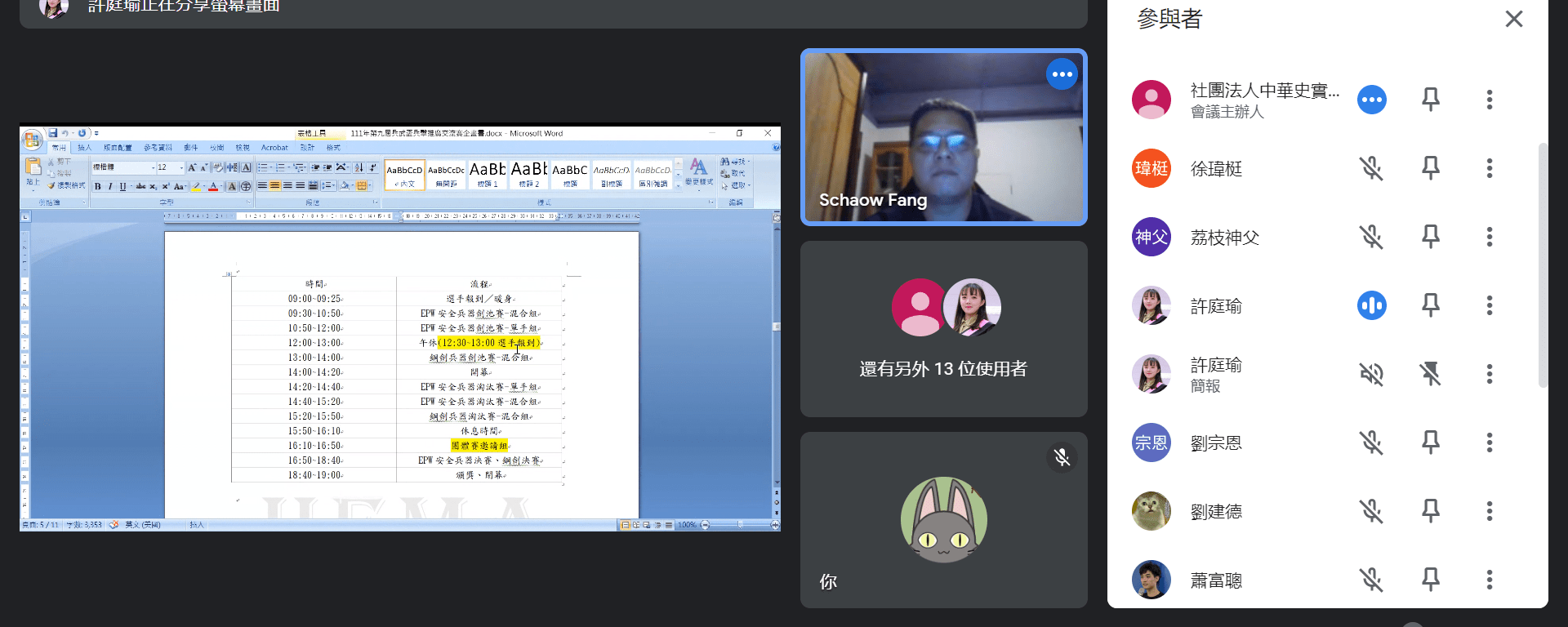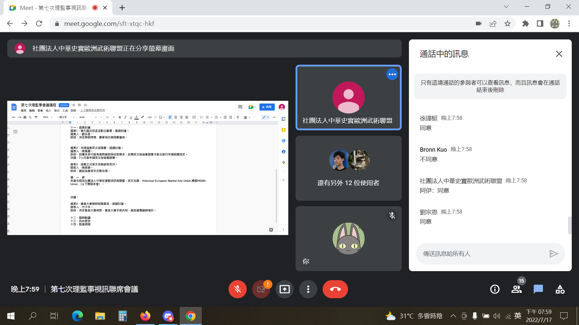 理事 許庭瑜:在Google Meet的即時通訊投票。