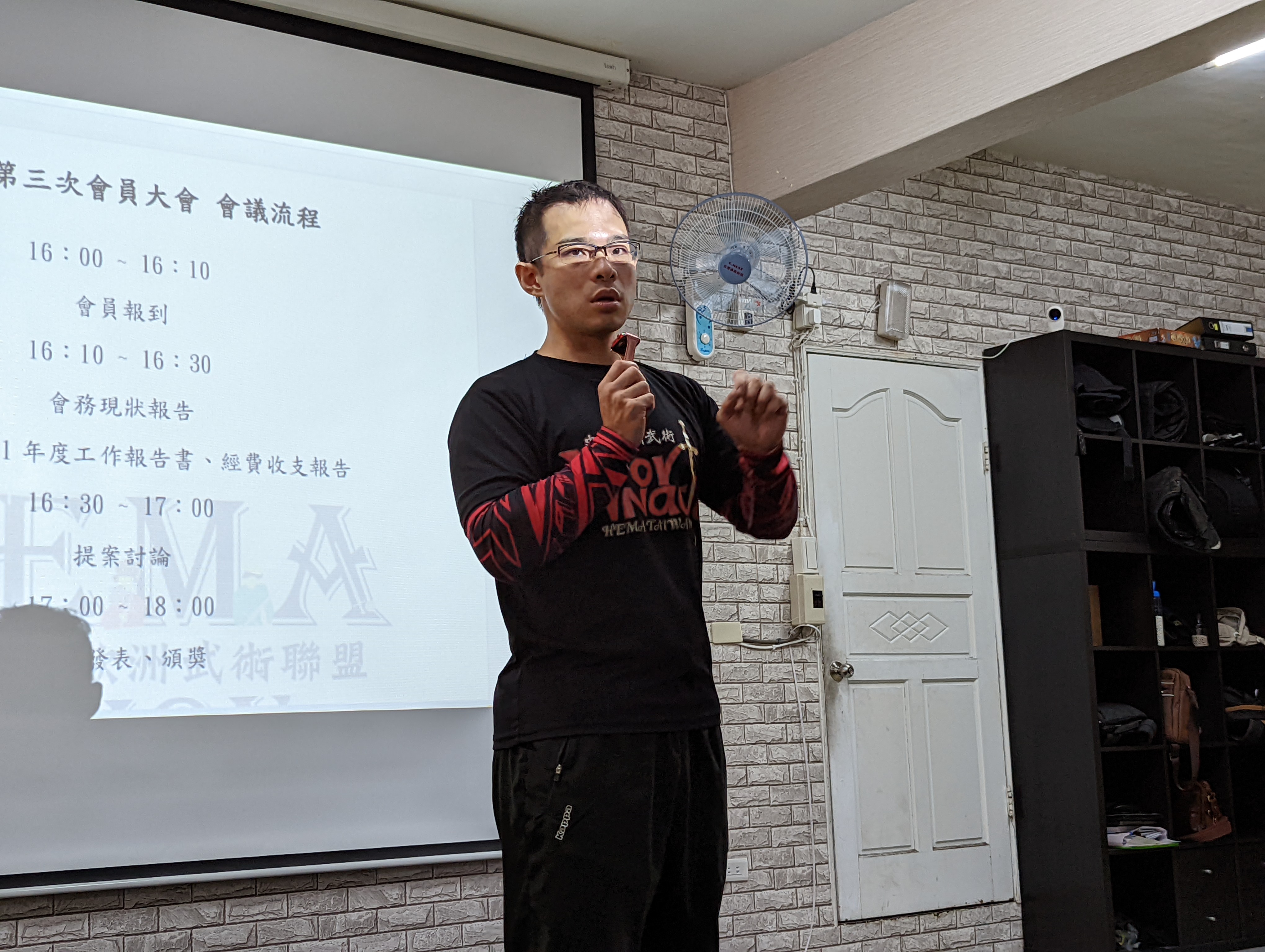 常務理事 李萃華:如同理事長剛剛所講,我們在一開始成立協會的時候,原本的名字就是史實歐洲武術聯盟,當時申請的負責辦理人和我們說非得要冠上那三個選項其中之一。當時我們在申請的時候就先以「中華史實歐洲武術聯盟」立案,之後如果可以修改的話再處理名字的問題。所以今天提請各位討論。我個人是覺得玩HEMA就玩HEMA沒有別的東西好加進去的,補充的話就到這裡吧。