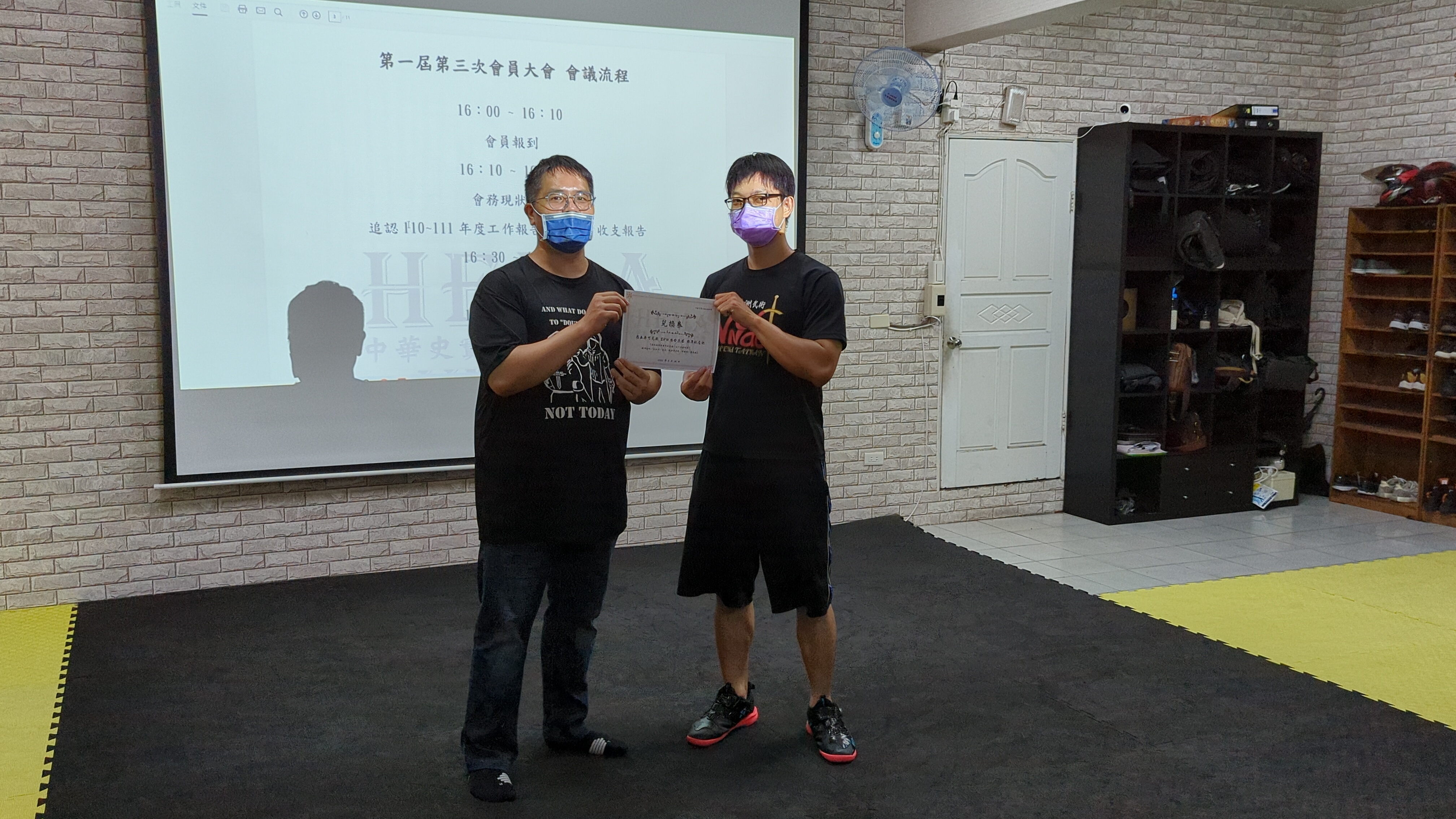 理事長 方子平:111年度的理監事會議,提交了活動成果報告,以及候補監事林韋志請辭一案,因林韋志為候補監事,故不須進行補選。今年我們也制定了教練檢定辦法,所以日後幾位有受訓的成員,可以陸續開始進行教練資格檢定申請。今年入會的成員有:林明隆以及童詩軒。歡迎加入我們的協會。