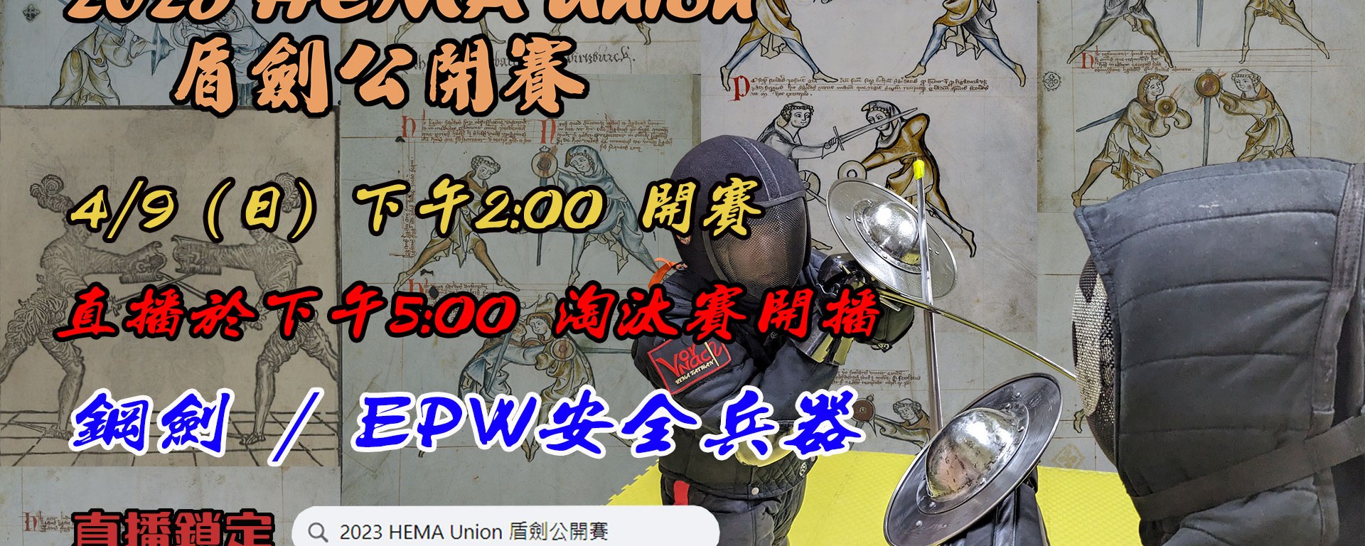 4/9 (日) 2023 HEMA Union 盾劍公開賽 下午2點開賽!