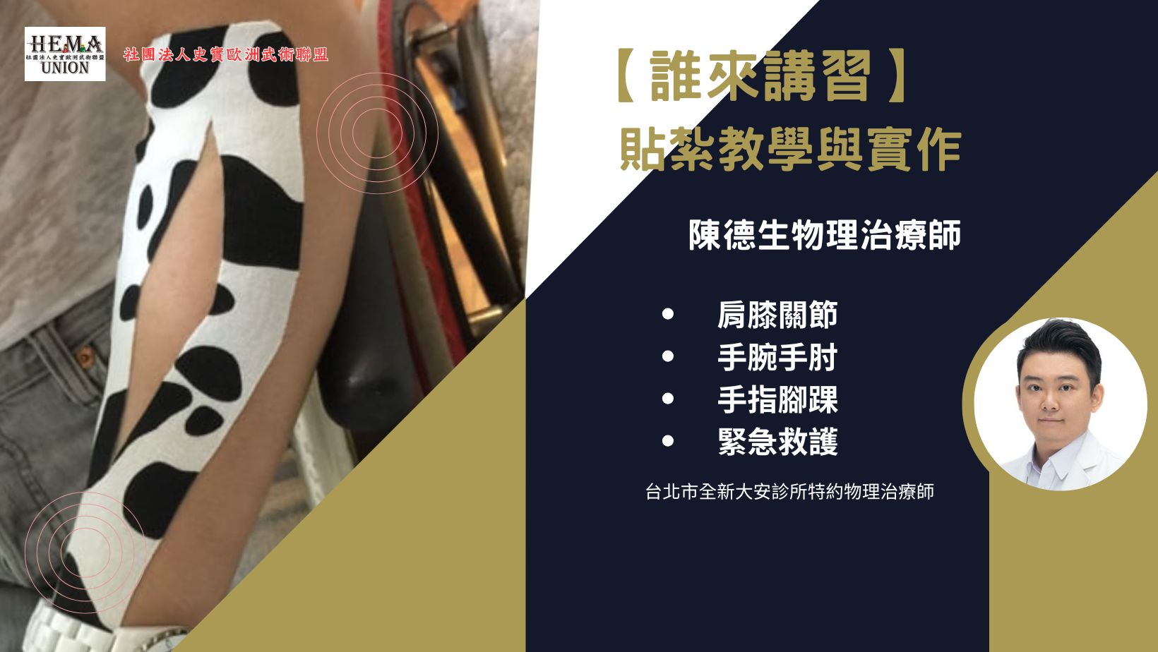 這次我們邀請到物理治療師陳德生醫師來給大家做基礎的貼紮教學,認識肩膀、手肘、手指、膝蓋、腳踝等關節常見的傷病,以及如何用貼紮進行保護與急救,讓大家在平時練習和賽場競技,劍術實力不再因傷病限制發揮。