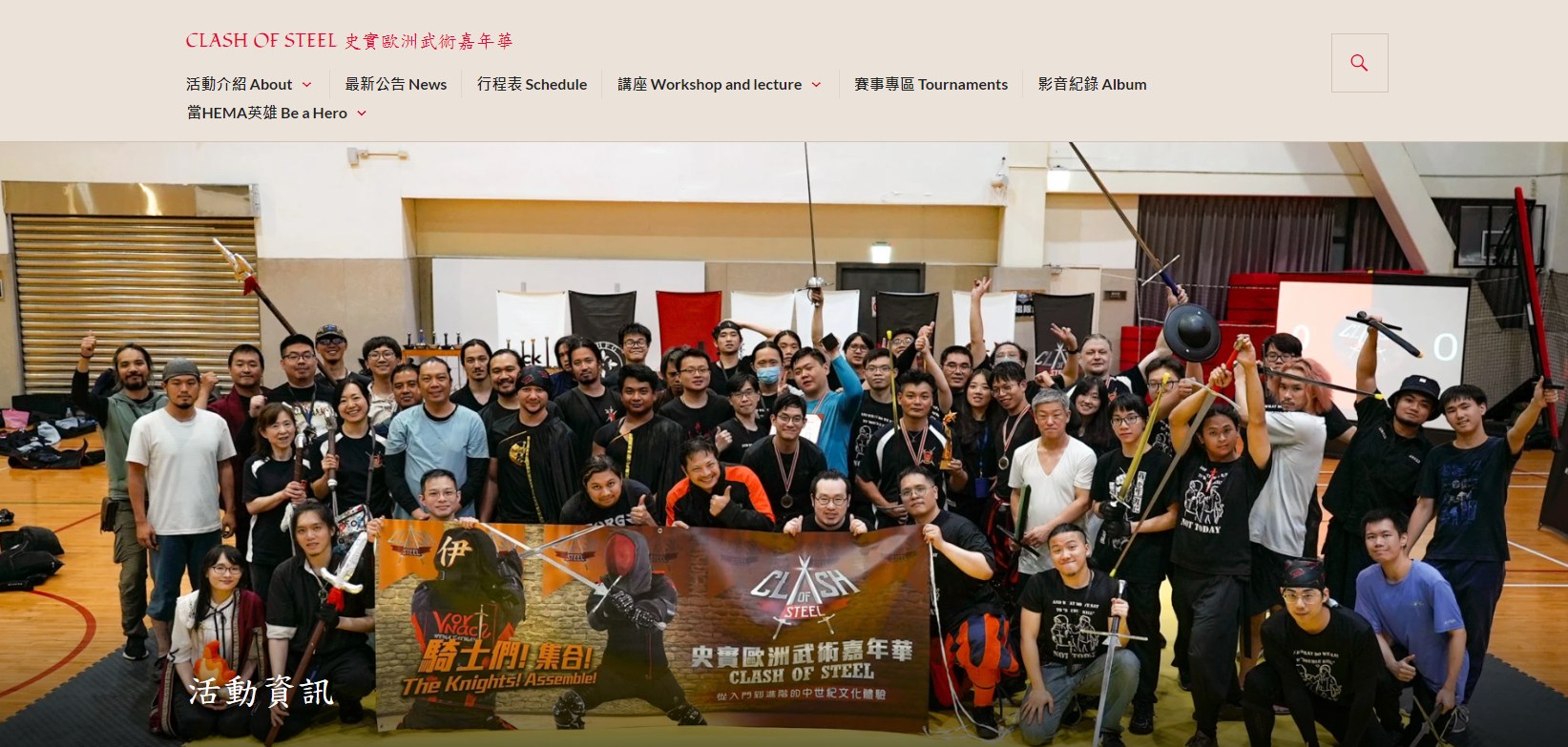 Clash of Steel 史實歐洲武術嘉年華 屬於亞洲的HEMA集會 來自不同國家、社團的選手,場上比賽、場下交友! 活動詳情請至 Clash of Steel 網站查閱 分享此文: 按一下即可分享至 X(在新視窗中開啟) X 按一下以分享至 Facebook(在新視窗中開啟) Facebook 喜歡 正在載入...